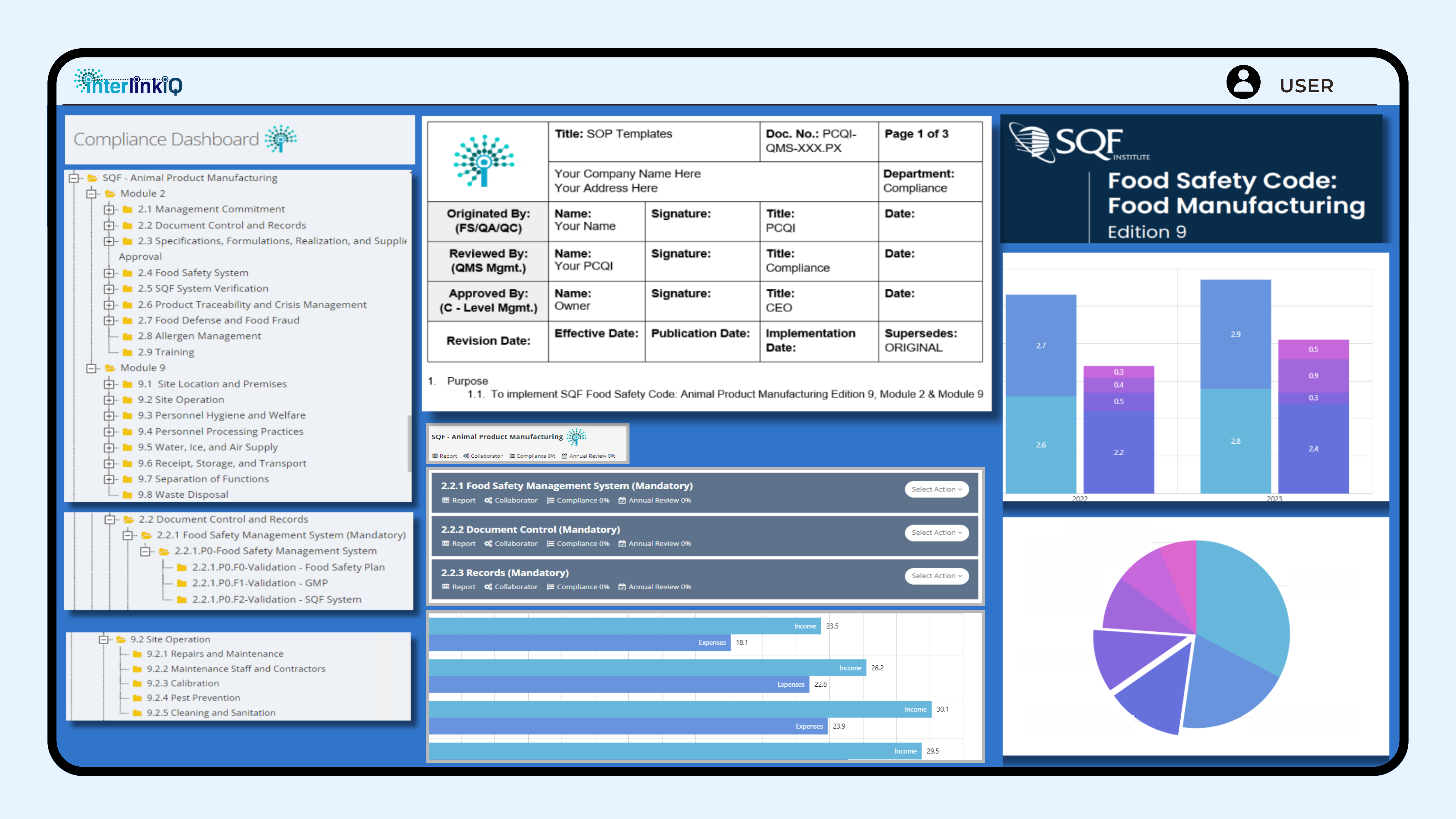 InterlinkIQ ensures compliance with SQF standards in Animal Product Manufacturing through quality control management, comprehensive documentation, and auditing tools management.